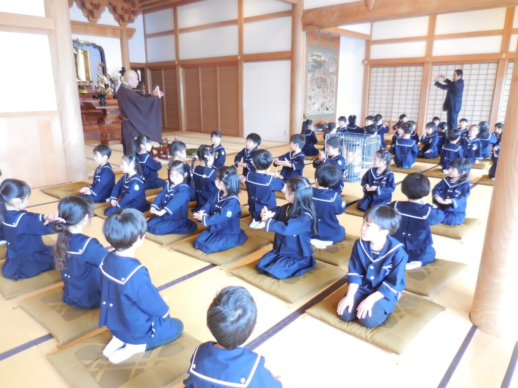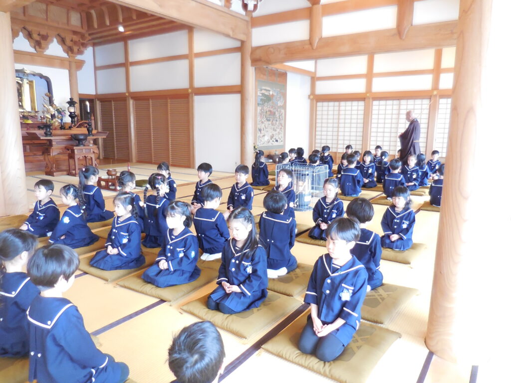 立派に卒園式ができるように、かっこいい一年生になれるようにと座禅体験にきた子どもたちは、よく集中し、真剣に座禅に取り組んでいました。