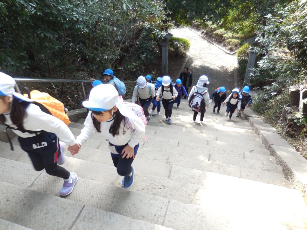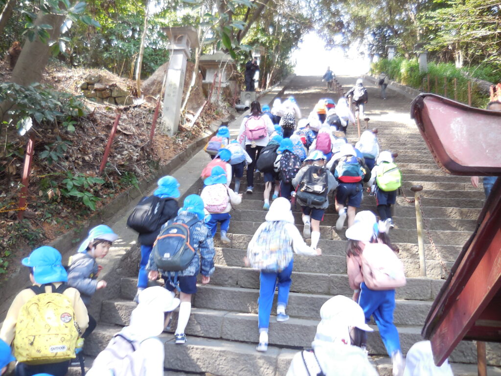 その後は、100段階段を登りました。階段の数を数えながら登る子、怖がりながらも頑張って登る子、様々な様子が見られました。