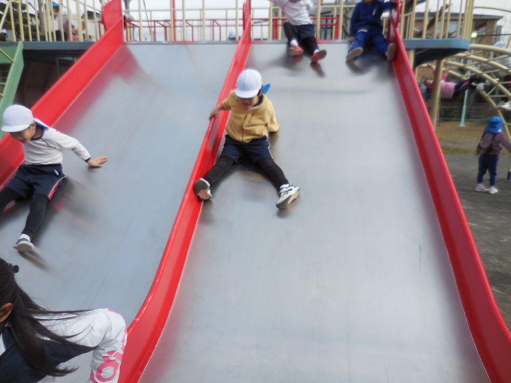 その後は、大きな遊具、広い広場で思いきり遊びました。